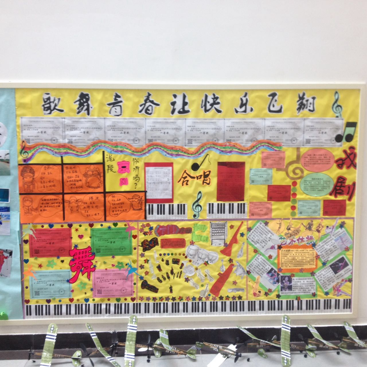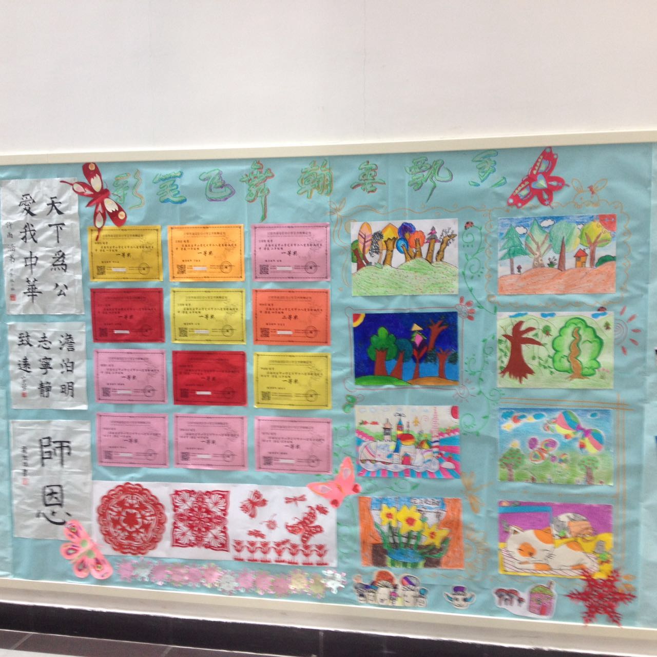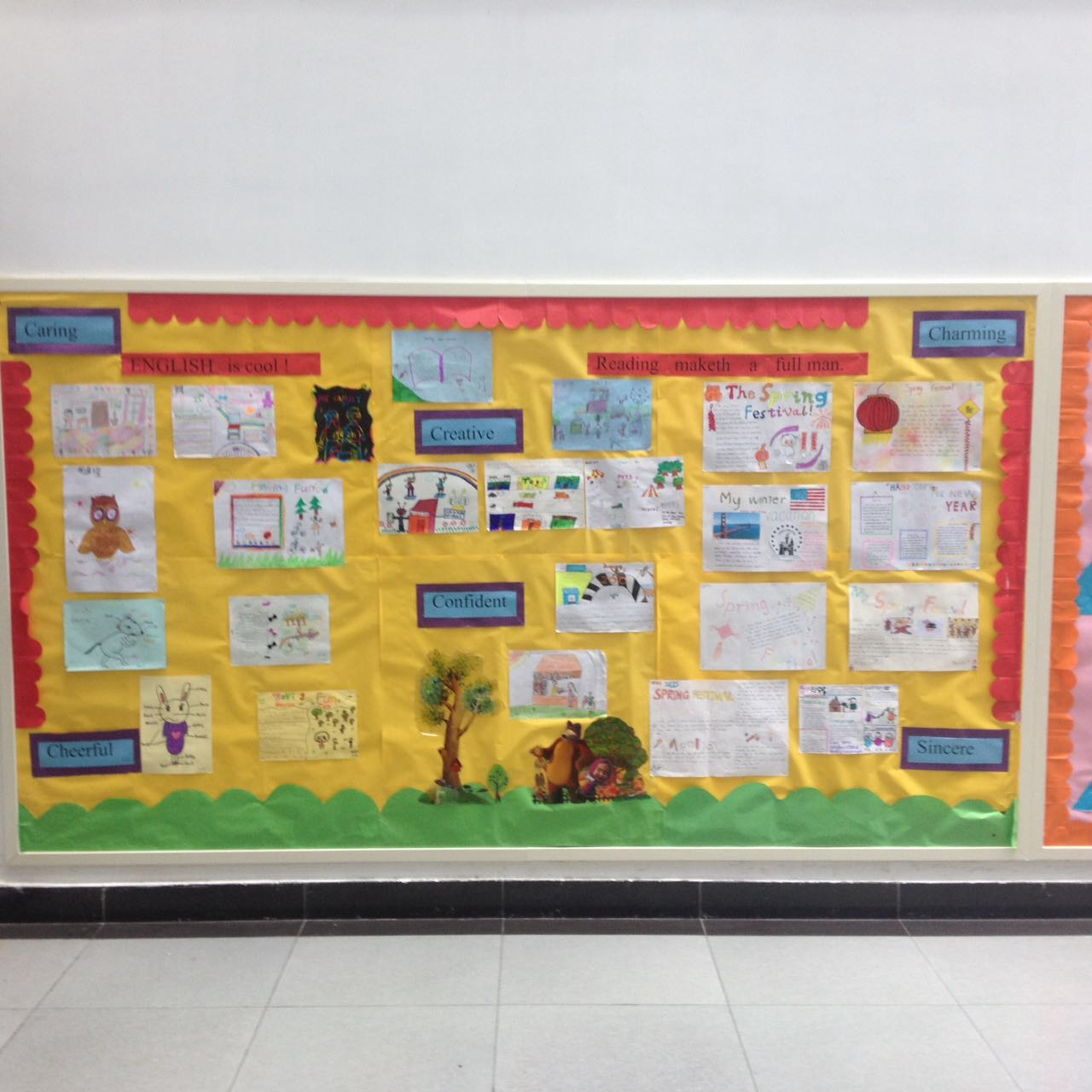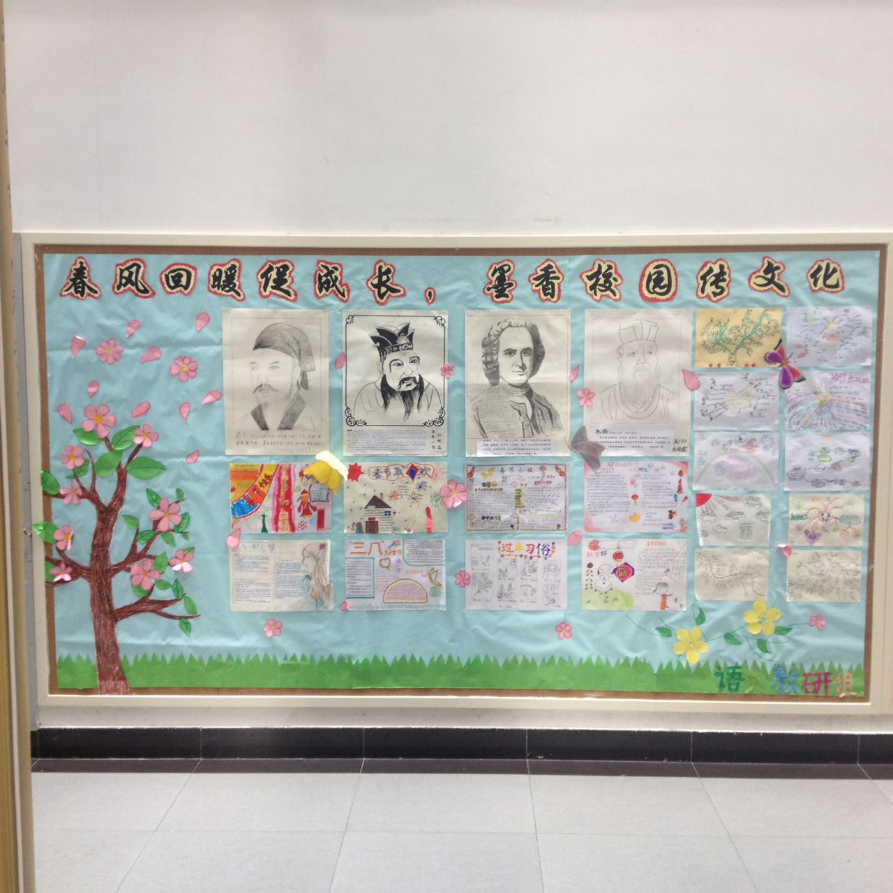 学期伊始,我校小学各教研组纷纷在文化建设上下了一番功夫。美术组的“彩笔飞舞、翰墨飘香”用爱心和童心描绘出了五彩缤纷的世界,编织着异彩纷呈的明天;音乐组以“歌舞青春让快乐飞翔”为主题,让孩子们在合唱、舞蹈、戏剧、戏曲、艺术体操的世界里翱翔;科学组参加OM、单片机、阳光测向、科技幻想画和综合实践课程的中国传统习俗介绍,再展北外外交官雏鹰风采;语文组以“传播和发展中国传统文化”为主题,通过思维导图展现历史变迁与诗词文化,彰显附校学子的民族情怀;数学组以“魅力数学,变形天下”为主题,使孩子们在数字王国、符号世界里领略以图解义、以意辩图的魔幻乐趣。体育组也当仁不让,宽幅展板主题赫然:“我运动、我健康、我参与、我快乐”,尽显学生青春风采。作为外语特色校,不能不说的要数英语组,主题词:Caring(关心),Cheerful(快乐),Charming(可爱),Confident(自信),Creative(有创造力),Sincere(真诚),引领我校学子做品质高尚的中国人和世界人。
