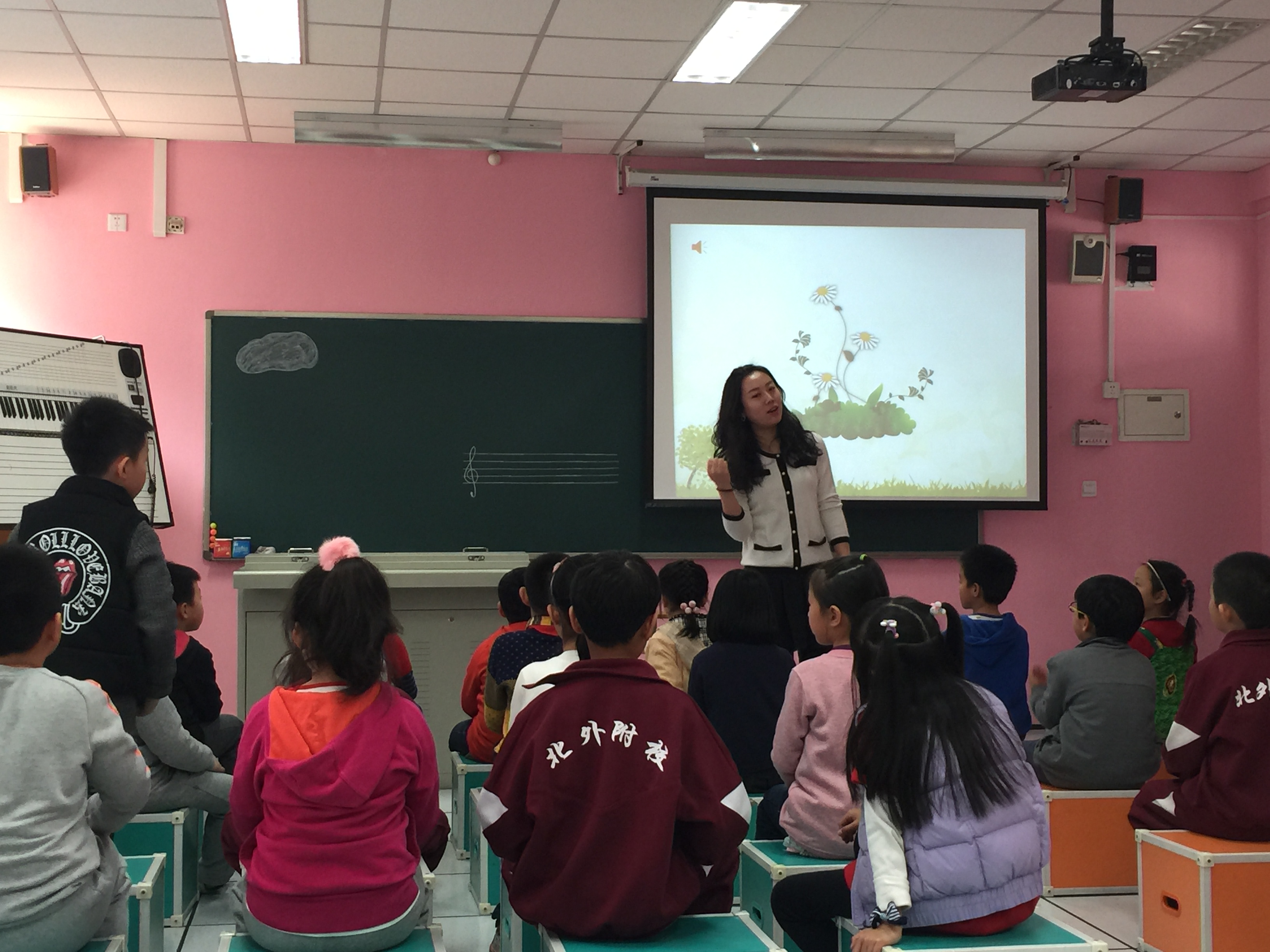在3月25日,小学音乐组田池老师上了骨干教师课《小雨沙沙沙》,李佳宁和刘沛老师和二年级(4)班的家长参加了听课活动,以下是我对于这堂课的心得与反思: