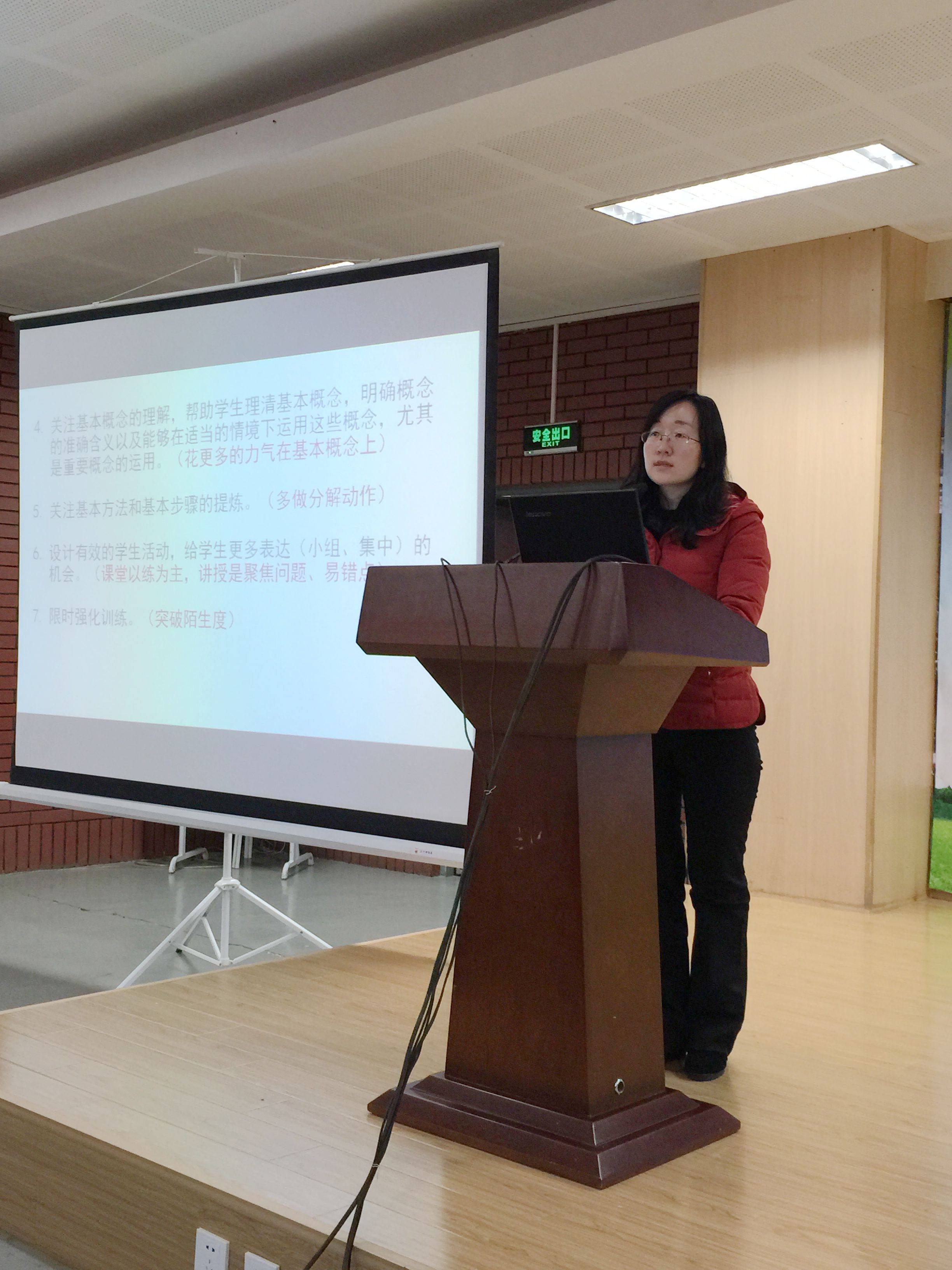 基于目前国家教育改革在教育教学工作各层面引发的的变化,王静在《2014——2015学年第二学期高中教学重点工作》阐释中提出,教师要修炼内功,创新突围。围绕“如何提高学生学业成就”,她明确指出了高中教师的教学定位:抓基础。对于“如何落实,如何评价落实程度”,以及“应对措施”,王静提出本学期教学工作的重点是:课堂教学,分层教学、个性化辅导,教学教研等。围绕重点工作,王静详细分析了“加强对学科课堂教学的监控,进一步改进课堂教学,提高教学质量”和“继续推进分层教学、个性化辅导,提高教学的针对性和实效性”对于学生牢固掌握基础知识,不断提高教学效果的重要性。在分层教学和个性化辅导方面,我校高三年级的做法已初见成效。王静号召各年级组、各教研组学习高三年级的做法,“强化目标意识,进行目标分解,备课组制定计划,落实到位,落实导师制”。对于本学期教学教研工作,王静从专题研究、教学素材、学生起点、核心知识、专题研讨活动等方面对教研组做了具体工作布置。最后,王静提出“行动、超越,在教育版图中存在与强大”与大家共勉。
