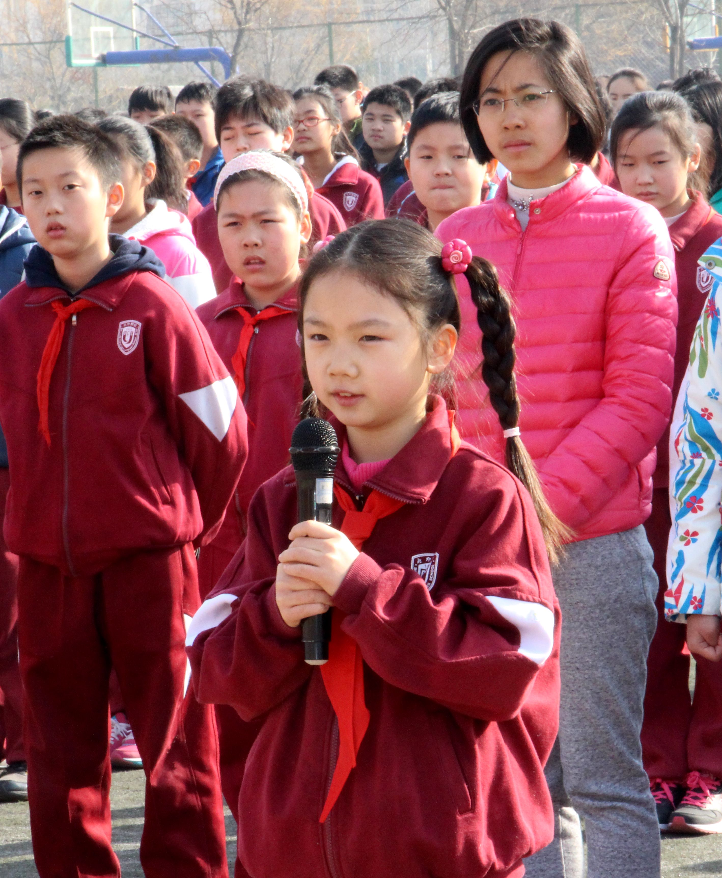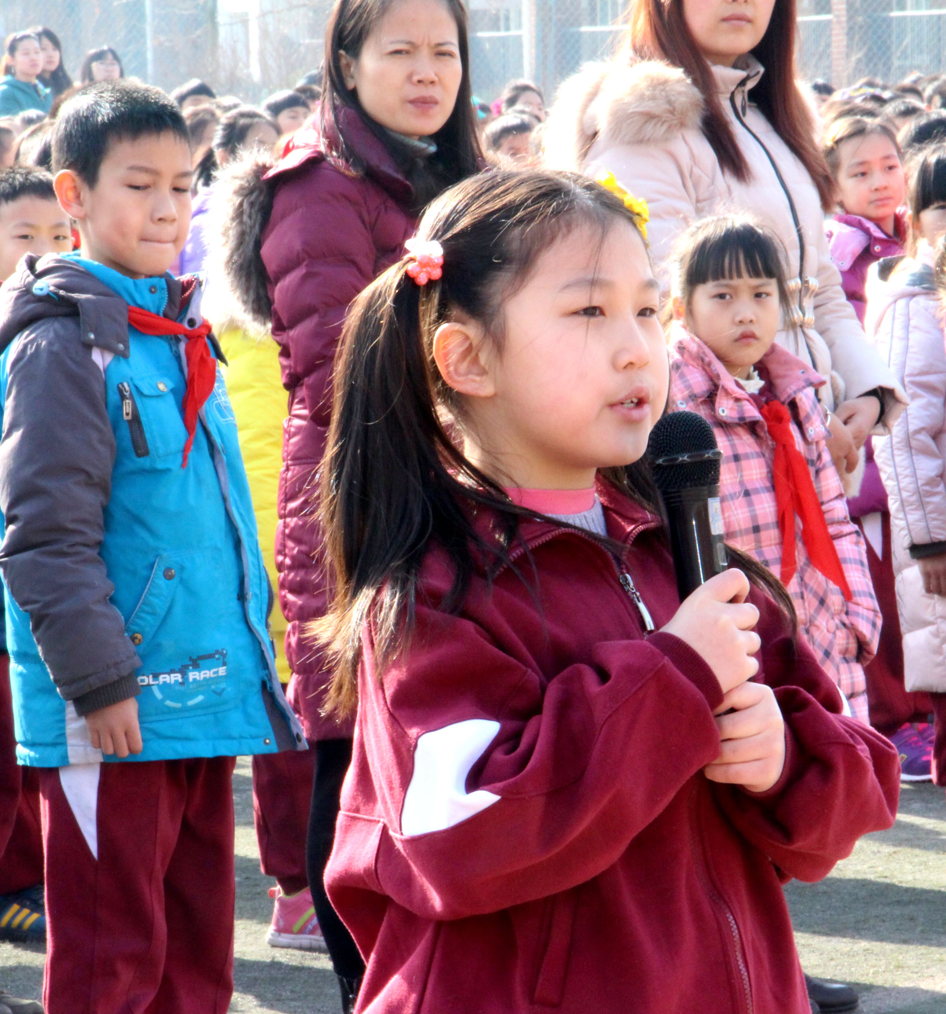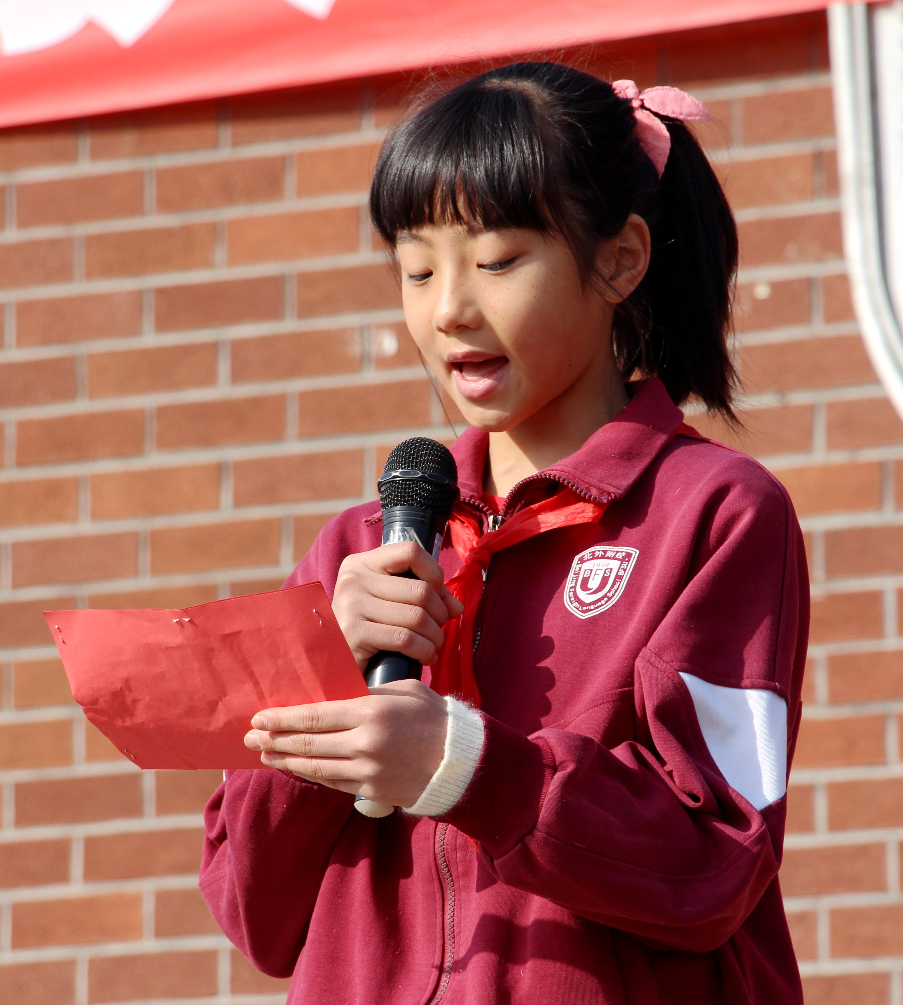 校领导的问候和激励令所有师生群情振奋,“希望”在每个同学心中点燃。由六年级毕业生代表魏斯扬同学倡议,各年级学生代表分别说出了具备年级特色的新学期新希望。一年级学生代表李文冉天真无邪地表达了梦想长大,迫不及待地说出要加入少先队的组织的美好心愿。声音虽然稚嫩,但“起步”的志气异常坚定。