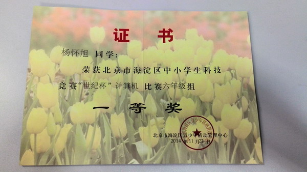 杨怀旭 “世纪杯”计算机比赛六年级组 一等奖