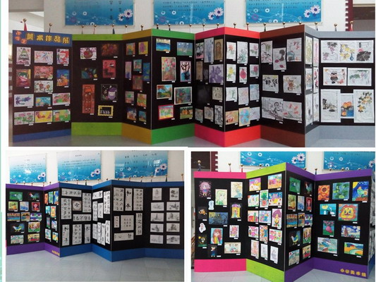 1月13日,小学美术组在国瑞厅前和中教楼一层举办“2015迎新年小学生美术书画展”“小学生油画作品展”及“小学教师书法展”。画展作品涵盖了儿童画、水粉、动漫、国画、书法、素描等,题材内容丰富,表现形式多样,充分展示了我校小学师生的艺术才华。