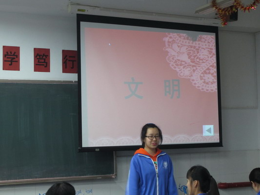 黄飞越同学谈的是“友善”,他说我们来自全国各地,为了共同的大学梦走到了一起,我们要善待这份友谊,同学之前要相互信任,相互帮助。课堂认真听课,积极回答老师提出的问题,是学生对老师的友善;按时交作业,是同学对科代表的友善;帮助同学解决问题是同学之间的友善;积极参加各项活动是对班集体的友善。我们只有把班级当作自已的家,把同学当成自己的兄弟姐妹,我们的班级才能更优秀。段宇航同学谈到“自由”,他说自由不是散漫,自由不能影响他人,自由不能违背规则。余佳同学谈“诚信”,她谈得很有高度,她说,每一个人都是社会的一份子,每个人诚信了,社会上就不会有地沟油、黑心棉、注水肉,作为中学生,我们一定要诚信做好每一件事,诚信学习,诚信考试,诚实做人,将来走向社会,走向各行各业,我们也会赢得社会的信任……。