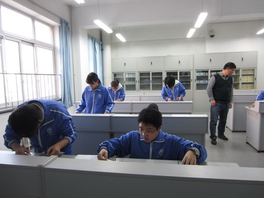 12月22日、23日,在高中教务处组织下,在物理、化学实验老师、任课老师共同努力下,高二年级物理、化学实验会考分别在三楼的物理实验室和一楼的化学实验室有序进行,即将参加2015年理化会考的全体高二年级同学完成了实验会考测试。