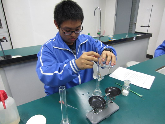 实验考试题目是从海淀区下发的实验会考题目中抽取,物理实验题目是“打点计时器的使用”;化学实验题目是“配制100 mL 0.1mol·L-1NaCl溶液”。一人一组,限时独立完成。大多数同学一次过关,个别同学重做后过关,仅有四名同学进行补考。