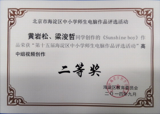 海淀区第十五届中小学师生电脑作品竞赛 二等奖