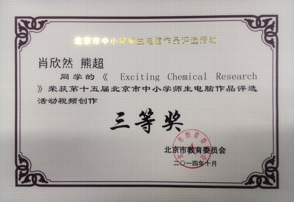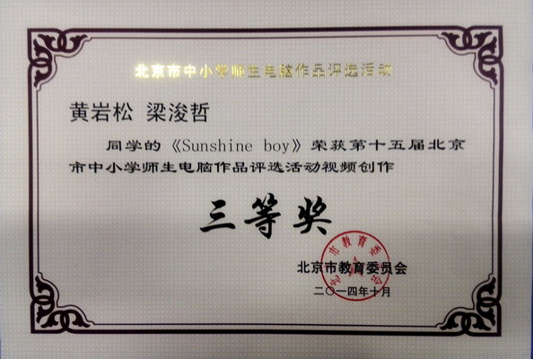 北京市第十五届中小学师生电脑作品竞赛 三等奖