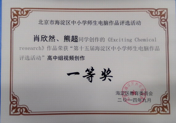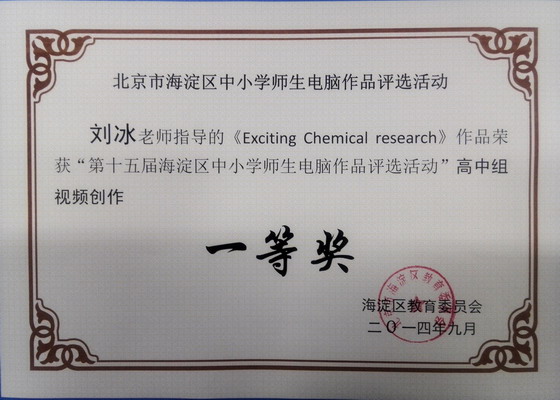 海淀区第十五届中小学师生电脑作品竞赛 一等奖