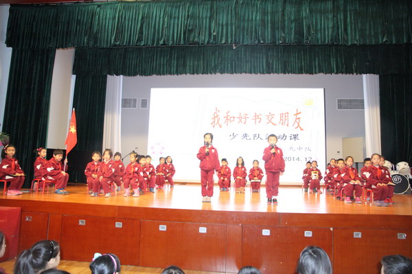 自本学期西北旺学区提出“队员自主,快乐体验”的中队活动宗旨以来,我校少先队不断探索自主、快乐的少先队活动课。本次活动由二(9)中队队员自主参与,以“我和好书交朋友”为主题。阳光小队、幸福小队、团结小队分别通过介绍自己阅读的书籍将小队员们带进了缤纷的书中世界。触动心灵的童话故事、增长见识的科普知识、享誉世界的四大名著……都是队员们的“好朋友”。智慧小队表演的童话短剧深受大家喜爱,演员们的演绎让在场的小队员感受到养成良好的阅读习惯十分重要。快乐小队和大家分享了阅读建议和阅读途径,队员们认真倾听,收益颇丰。