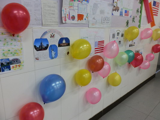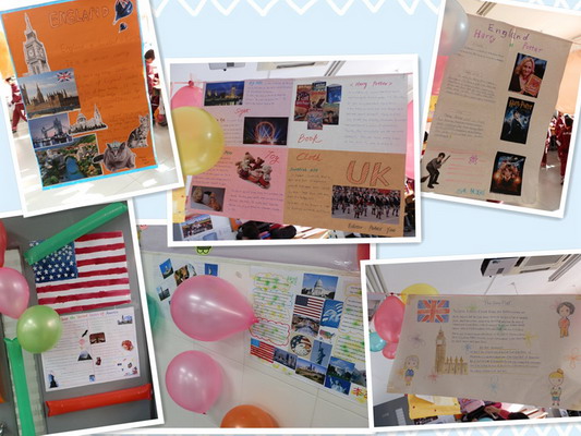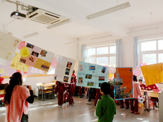 游园会分为8个展区,每个展区为一个国家,以宣传各个国家的环境、文化、风土人情为主,分别由8位英语教师承担各自的布置任务。经过师生们精心的准备,各班教室悬挂起了孩子们亲手绘制的海报,充满了异域风情。