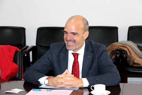 林卫民对伊鲁印先生一行到来表示热烈欢迎,并向参赞一行介绍了我校复语课程的设置情况。由于西班牙政府及使馆教育处的支持,我校西语教学取得了长足发展且日趋规范和成熟。林卫民希望参赞一行此次来访,能够在西语教师培训及考评方面给予更多的支持和帮助,给我校西语教学提供更多发展契机和希望。