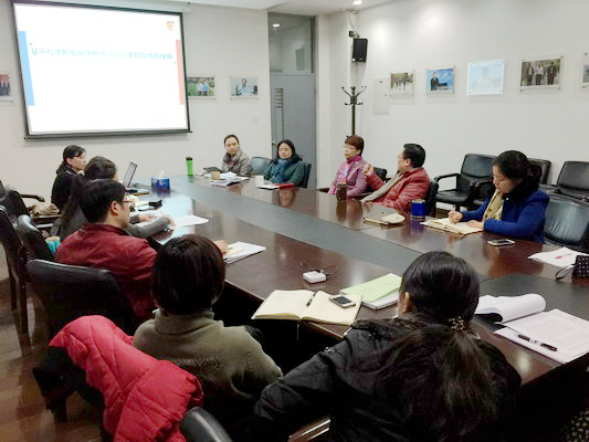 王彤首先作了《基于校本的发展性教师的内涵分析》的汇报。参加的小组成员包括王静、王艾霞、郑蔚三位老师。汇报从发展性教师评价、国内外发展性教师评价现状和基于校本的发展性教师评价的价值三个方面作了具体讲解。王校长在汇报中结合我校校情,分析了学校开展发展性教师评价研究和实施对学校持续性发展的作用。