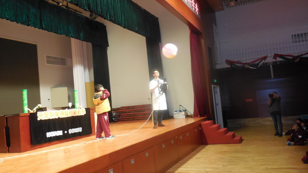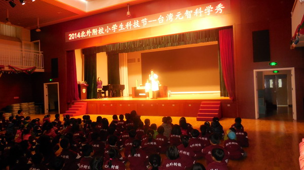 11月14日下午,小学一年级举行了一次“台湾元智科学秀”活动。来自台湾的维尼老师和丫丫老师为一年级孩子上了一堂生动的科学活动课。
