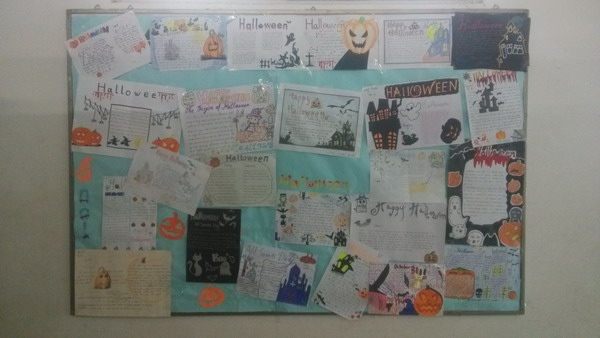 10月25日起,由初一年级全体英语教师组织,全体初一同学积极参与的一系列万圣节庆祝活动拉开了帷幕。活动包括亲手制作万圣节主题手抄报、南瓜灯以及集体观看关于万圣节的电影《史努比:万圣节南瓜头》等。手抄报显示了同学们丰富的想象力和创作力,而“南瓜灯”的制作则体现出同学们很强的动手能力。在活动中,同学们各显其能,创作出一大批独具创意的优秀作品。最后,同学们经过投票,选出了万圣节优秀手抄报和优秀南瓜灯,并分别在年级宣传栏和图书角进行了展览。活动产生了 “最优雅南瓜灯”, “最可爱南瓜灯”,“最鬼南瓜灯”,“最威武南瓜灯”,“最创意南瓜灯”,“最霸气南瓜灯”等评选结果。其中初一(2)班于好的制作获得“最鬼南瓜灯” 称号,初一(4)班曾雨萱、陈婧童、谷雨晴的南瓜灯分别获得“最优雅南瓜灯”、“最可爱南瓜灯”和“最威武南瓜灯” 称号;初一(6)班杨乐山的制作获得“最具创意南瓜灯” 称号;初一(9)班唐一雯和金泽茜的作品分别获得了“最优雅南瓜灯”和“最鬼南瓜灯”称号。10月29日下午,同学们身着万圣节服装,热情高涨地和老师们一起观看电影并学习了万圣节歌曲Halloween Songs。活动在一片欢声笑语中结束。