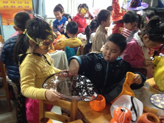 活动当天,孩子们盛装来到学校,每个孩子的脸上都洋溢着开心的笑容。在活动中孩子们特别喜欢与其他班的孩子分享糖果,得到了每一颗糖果都觉得特别幸福。同时,他们也会把自己精心准备的小礼物分享给他人。通过活动、孩子们不仅开开心心的过万圣节、更重要的是懂得了分享的乐趣及特殊意义。