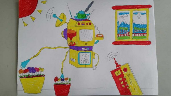 为迎接我校即将到来的科技节,同时响应海淀区科学幻想画比赛的号召,我校小学科学组教师组织四五年级小学生进行了科学幻想画的创作活动。