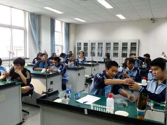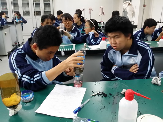 10月22中午,在主教楼一楼化学实验室,初三化学兴趣小组开展了第一次活动——制作简易净水器。学生利用纱布、棉花、活性炭、小石子按步骤完成了净水器的制作,最后还亲自检验了净水器的净水效果。当有的小组看到有色的污水通过自己制作的净水器变得澄清时,组内同学充满成就感;净化效果不理想的小组也仔细查找原因并进一步改进装置,整个活动过程中学生兴趣很高。