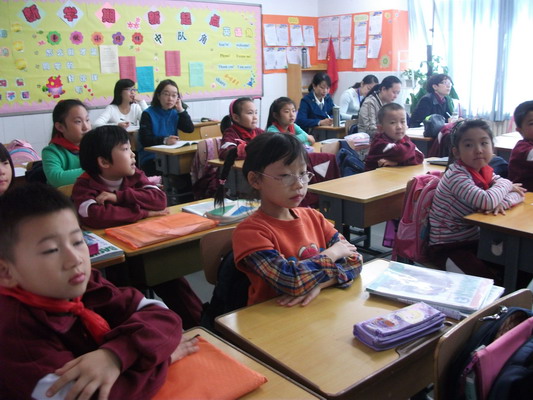 10月14日上午,百年老校谈固小学教师一行六人走进了我校二年级郭敏玲老师的英语课堂。