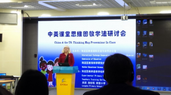 10月16日我校小学校长于苒亲自带队到海淀区进修学校附属实验小学,参加了由北京市海淀区教委国际交流与合作办公室、北京海淀区教育科学研究所主办的“中美课堂思维图教学法研讨会”。随同前往的还有小学副校长郭丽丽,小学语文、数学、英语、科学四科教研组长和谈固来访教师。研讨会以思维导图在各个学科的教学运用展开,通过直观的课堂教学使参会老师深刻感受到思维导图对培养学生思维能力的巨大效用。