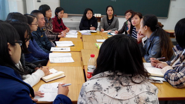 于校长、外研社专家以及听课教师一起进行评课