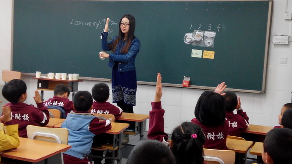 贺旭老师在讲授双语科学课