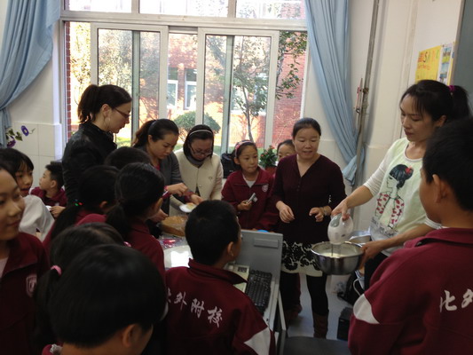 同学们认真观察奶油制作