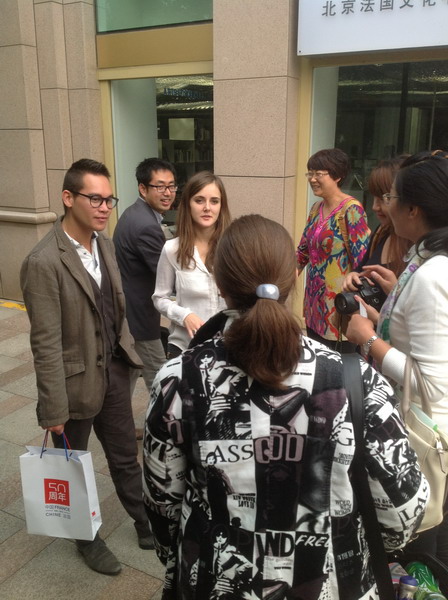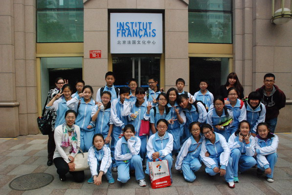 10月9日下午,我校应法国使馆教育处邀请,在初二年级组长张霞的带领下,我校法语教师、初一(6)班班主任闫亚军组织全体初二年级和部分初一年级学生共48人参观了北京法国文化中心。法国驻华大使馆文化教育合作处项目专员李海与文化中心负责人为我校师生进行了详细讲解和热情接待。