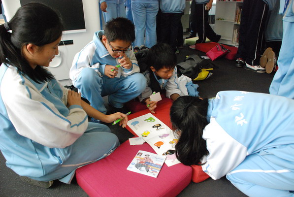 学生们在工作人员带领下参观了文化中心。在短短20分钟的介绍中,学生们了解到了整体建筑风格,中心各个组成部分和各类书籍在图书馆的分布;孩子们在青少年活动中心参加了生动活泼的小游戏,法方老师Alexia Gouttard在题板上写出了3道有关图书的寻宝题,学生们积极参加寻找,现场气氛一度非常活跃,游戏期间,初二年级学生们用流利的法语回答问题,得到了文化中心老师的赞许;学生在反映厅里观看了由中心精心挑选的两个极具法国特色的动画电影,短片虽情节迥异,但均画风独特、艺术气息浓郁,学生在短片结束后反映与自己从小看的卡通片有很大不同,有些情节很值得细细思考;在最后阶段的自由活动时间,学生们有些在图书馆中阅读了自己感兴趣的法语书籍,有些去品尝了法国甜点,文化中心同时还为学生们准备了精美的小礼物。