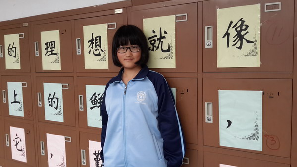 她从小练习书法,写得一笔好字。她还积极参加板报的编排、抄写工作。她就是初一五班的语文课代表王曼丁同学。
