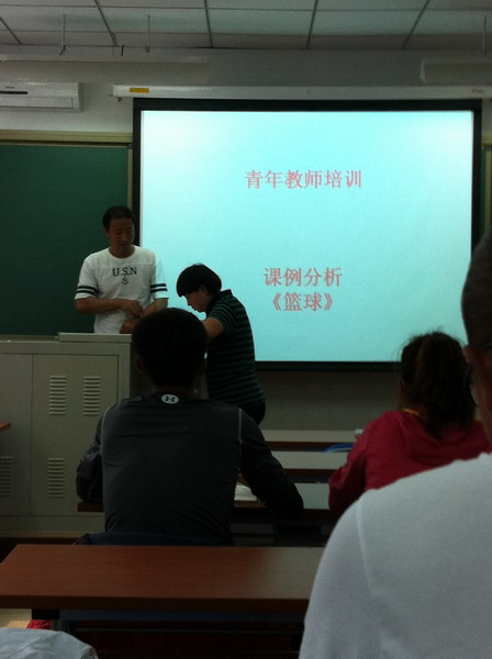 青年教师培训内容是课例分析。由新任教师讲述上课中的教学困惑,从教师们的困惑入手进入本次培训,这是本次培训的第一个讨论问题;第二个讨论问题是一节体育课由哪些方面组成?教师们分组讨论,积极思考,主动发言;参会教师一起观看了一节全国评优课影像,《篮球运球》所授班级小学五年级,良好的上课氛围和纪律使所有观看教师眼前一亮。结合自己的课堂,大家积极讨论本次课的优、缺点,争取做到平时常态课有这样良好氛围和纪律。