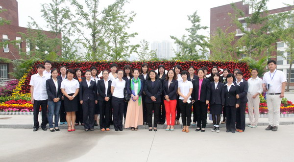 林子敬校长、于苒校长与全体语文教师及领导合影留念