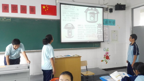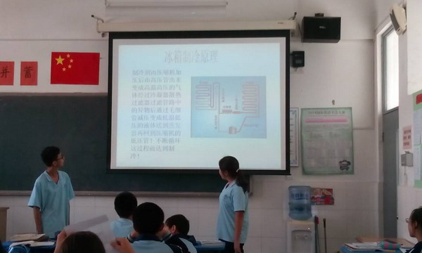演讲开始了。同学们在今天一个个像小老师一样,给其他同学认真细致的讲解,这是为什么,那又是为什么。各个小组在周末的精心准备,现在都拿出来了。一时间“八仙过海各显神通”各种各样从老师那学来的、自己想出来的授课方式层出不穷:有的用了PPT,图文并茂;有的作了清晰的板书,直观明了;还有的更是插入了视频搭配讲解。令人印象最深的是播了视频的那个组,生动而清楚明白地用动画表现了雨的形成,再配以适时而恰当的表述——真是让人一下子就理解了。
