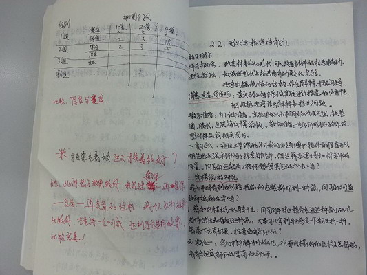 本次教案检查的重点是前两周正课教案的反思和复备,科学组教师按照学校地要求无论新老教师全部手写教案,年轻教师还要求体现双语教案特色。与此同时,本次教案还检查了组内教师前四课时的选修课教案,重点检查了老师们选修课的教学环节,同时老师们交流了本学期带队参赛的训练计划和校队组建计划,也一起讨论了本学期选修课的展示方案。