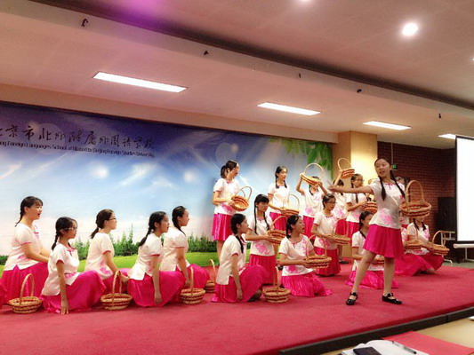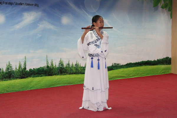 文艺表演首先上场的是学校合唱团的同学们,他们演唱的《摘菜调》优美动听,民族风味浓厚,独特的贵州摘菜女的扮相更加为曲目增添色彩,而曲目《故乡是北京》以其绝佳的创意,精巧的改编和极富感染力的演绎带起了欢迎式的第一个高潮,德国学生们对我校学生的高超歌唱技巧叹为观止,报以热烈的掌声;初一(3)班的陈禹诺同学带来竹笛表演《春潮》,她用高超的演奏技巧惟妙惟肖地模仿了春季时分潮水翻涌气势磅礴的景象,令人仿佛身临其境,令德国同学大开眼界;初一同学带来的民族独舞《雨竹林》,以千变万化的优美舞姿栩栩如生地表现了孔雀起舞的优雅魅力,获得了阵阵喝彩;初三年级姜嘉祺同学带来的琵琶表演《彝族舞曲》,独特的民族韵味和极富表现力的演奏也让德国同学们看得目不转睛,听得全神贯注;初三年级的杨果同学,为我们表演了一段优美变幻的彝族舞蹈《如梦年华》,表现了中国劳动人民最美的一面,而最后的技术展示连翻十数个后手翻也令全场看得大呼过瘾,掌声雷动。