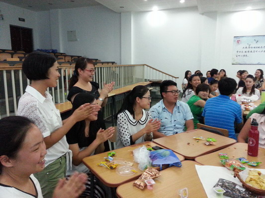 大家踊跃发言,外教老师们提出了很多关于中国习俗的问题,中教老师们积极地解答;每位老师带去了小食品,大家共同分享,全场营造了轻松愉快的学习交流氛围;“数3”“字母接龙”“城市接龙”几个小游戏把活动带到了高潮,最后中国老师唱了一首《You’re my shine》,来自多伦多大学的外教们合唱了加拿大国歌《O, Canada》。