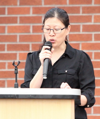 家长代表崔雪梅女士发言。她首先代表全体家长对附校辛勤的园丁们表示最真挚的感谢,并表示家长们会积极配合学校做好家校共建,为孩子们的成长一起努力,这是家长们的责任,也是家长们的义务,希望同学们能够刻苦学习,为自己的梦想拼搏努力。