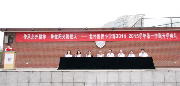 9月1日上午,我校小学部在操场举行了“传承北外精神,争做阳光少年”主题开学典礼。教育部《国家英语课程标准》专家组组长、北京市人民政府顾问、著名教育家、北京外国语大学教授、北外附校顾问陈琳教授,北京外国语大学校长助理、我校校长林卫民,常务副校长王彤,副校长、副书记高雁鸣,副校长于苒出席本次典礼。小学部副校长贾志庭主持本次典礼。