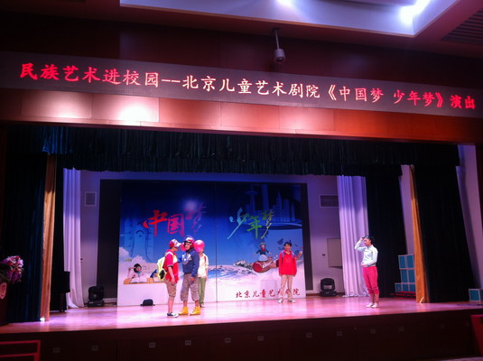 5月27日上午,我校小学生在国瑞厅观看了北京儿童艺术剧院校园儿童剧《中国梦•少年梦》。北京儿童艺术剧院的6位演员进行了精彩演出。我校副校长于苒,校长助理、小学部副主任赵玉玲、小学部教学副主任郭丽丽、德育副主任贾志庭出席了本次活动。一年级和学前班的同学们参加了本次活动,观看了精彩的演出。