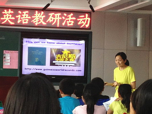 第二节课由张璐老师讲解的四年级的《Unit 14 My Hobby》。在课堂开始,张老师让孩子们来猜她的爱好,充分引起学生们的兴趣,活跃了课堂气氛。接下来通过名人的爱好以及吉尼斯世界纪录,使学生们在学习本课知识点的同时,更广泛了解多种多样的爱好与兴趣。上课过程中,张老师充分挖掘了学生们的想象力,创造力和动手能力,培养了孩子们的小组合作使孩子们将所学知识与现实生活经验联系在一起进行听说和巩固练习。