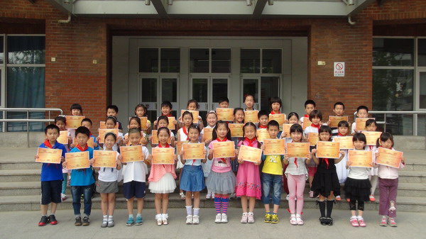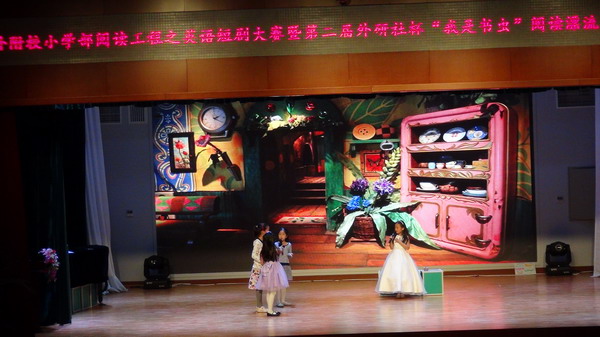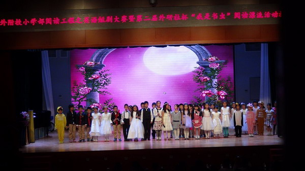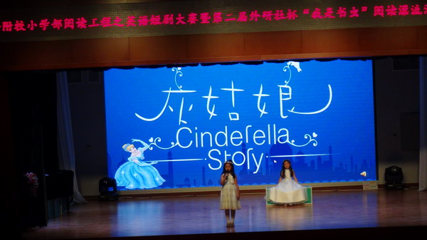 在四月的读书表演活动中,各班选取Backpack中的小书故事进行短剧编排和表演。老师们在选材和编剧上给与学生指导和建议,学生们根据老师的建议与对故事的感悟自编自演小短剧,有的班级学生们还积极制作了道具。四月底年级选拔37名小演员编排英语剧《Cinderella》,孩子们认真地编排短剧并熟记台词,家长们积极配合年级组工作,为孩子所扮演的角色准备服装。5月14日二年级组英语短剧《Cinderella》参加我校小学部阅读工程之英语短剧大赛暨第二届外研社杯“我是书虫”阅读漂流活动,“凭借优秀的英文口语表达,高超的演技”荣获一等奖。