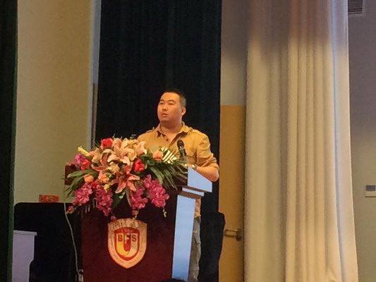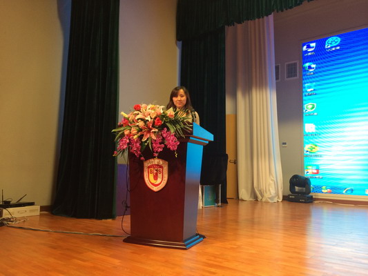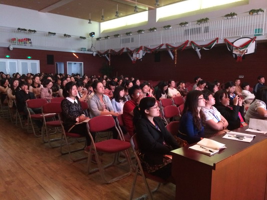 于校长对参加“第二届教育国际化趋势下的双语教学研讨会暨小学双语科学教材培训会”活动的感受与老师们交流。一张张照片将全体老师的目光拉近到主办单位——成都市锦官新城小学。这些照片引起老师们共鸣的是:这所小学从校园环境到走廊文化,从教室布置到板报宣传以及专用教室的设计等,都彰显出了细节管理渗透德育的用心之处。而于校长别有用心的抓拍到这些点滴之处,更是想指引我校教师:关注细节,用心育人,将德育工作渗透到细微之处。于校长的这些感受,也让小学部的老师们领悟到,我们不仅要看到他校老师好的做法,更应让这些长处成为我们不断完善自己教育教学的动力。