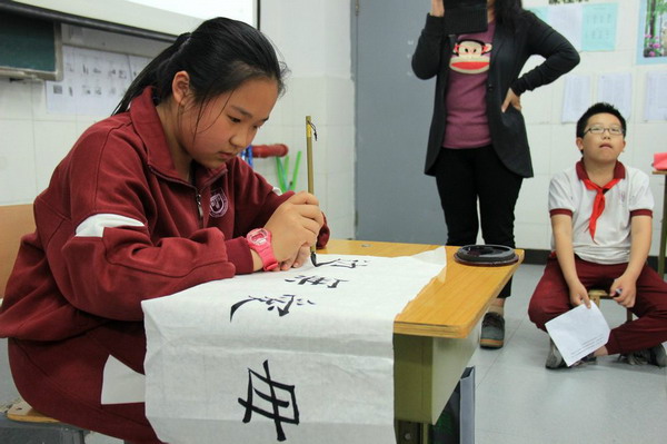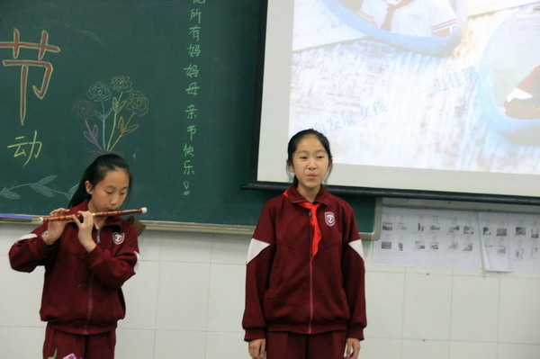 学生王俐颖现场挥毫,书写“母爱无边”,孩子认真的表演加上动人的配乐让所有家长都感受到了孩子们发自内心的感恩;李若秋用笛声,迟佳璐用歌声,共同表演了节目《妈妈的吻》;徐铭心用情真意切的独唱表达了对妈妈的情意。平常或淘气或倔强或不服管教,让妈妈们头疼的孩子,在不经意间,都长大了。那一句句感人肺腑的节日祝福尽管很煽情,但如三月春风,六月暖阳,让每位妈妈的心都变得异常柔软。我相信,当时在场的每位妈妈,都被孩子的真情感动了。