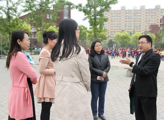 于校长深知张校长教育观点之新,理念站位之高,借助观摩课间操的间隙,特意组织数学备课组的全体成员,以操场为延展课堂,以风儿作为麦克,请张校长进行了专业详实的点评。张校长认为“本节课的整体知识点把握准确,重难点突出。希望合作式学习能向协作式学习过度,让每一位学生都有展示和提升自己的机遇”。每一位教师听后都感觉获益良多。五年级英语课上,孩子们的流畅表达,精彩的CCTV-Science频道的情境创设,talk show 节目掀起的高潮,得到了张校长的肯定。他在评议中特别指出:“课堂上教师切记要照顾到班上每一个学生,建议听课教师代替授课者的另一双眼睛,去观察和体验孩子们的表现。观察后他发现孩子的参与度很高,教具丰富……”张校长精准的点评,给所有教师开辟了一种听课新视角,对自我教学的提升大有帮助。