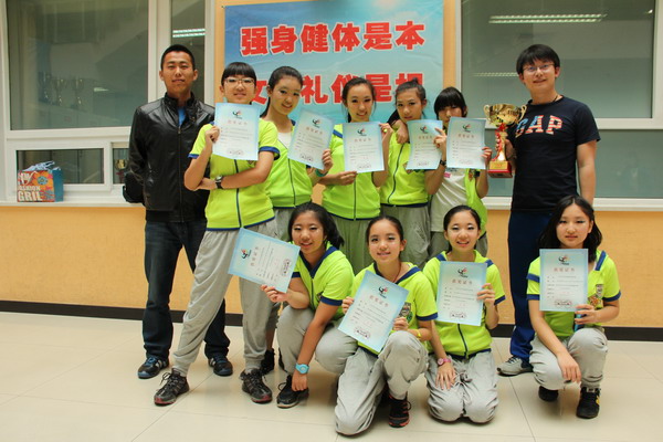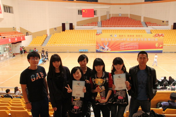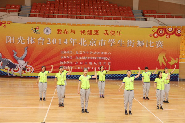 4月19日,我校健美操队参加了在地坛体育馆举行的“阳光体育2014年北京市学生街舞比赛”,分别荣获“初中组健身型街舞”集体一等奖和“高中组健身型街舞”集体一等奖。