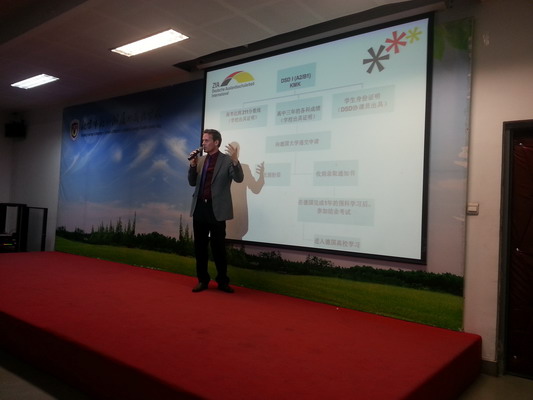 我校作为北京市德语语言等级考试唯一考点,自德语项目创办至今已有多名高三德语毕业生以优秀的成绩申请德国大学。德国大学以及德国国外学校教育司非常欢迎越来越多的中国中学生凭借DSD语言证书到德国学习。为此,德国国外学校教育司特意为中国的DSD学校举办“留学德国信息”讲座。本次讲座就申请德国大学中国学生所需具备的前提、大学分类、大学的申请日期等进行了详细的介绍,在家长提问环节,家长就具体的申请大学事宜、德国现状等进行提问,现场气氛十分热烈。