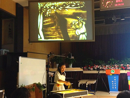 在教育魅力展示环节,老师们八仙过海各显神通,歌舞、绘画、朗诵、架子鼓、钢琴、沙画……展示的内容和形式非常有感染力和吸引力。我校李文霞老师展示了沙画故事“贺卡里的妈妈”——故事里老师如妈妈一样的爱让人心里暖暖的,整个赛场鸦雀无声,大家都沉浸在这动人的故事里,李老师动情的演绎配以精美的沙画,使在场的评委流下感动的泪水。