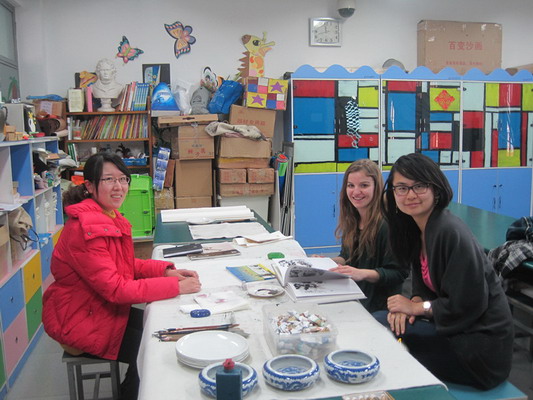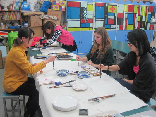 3月13日下午,我校小学部两名来自多伦多大学的外教在小教405教室进行了第二期中国画培训。