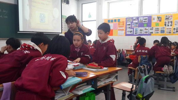 3月14日上午,我校小学三年级英语组教师和谈固小学教师一同听了骨干教师Simon的英语示范课。