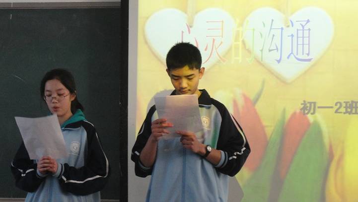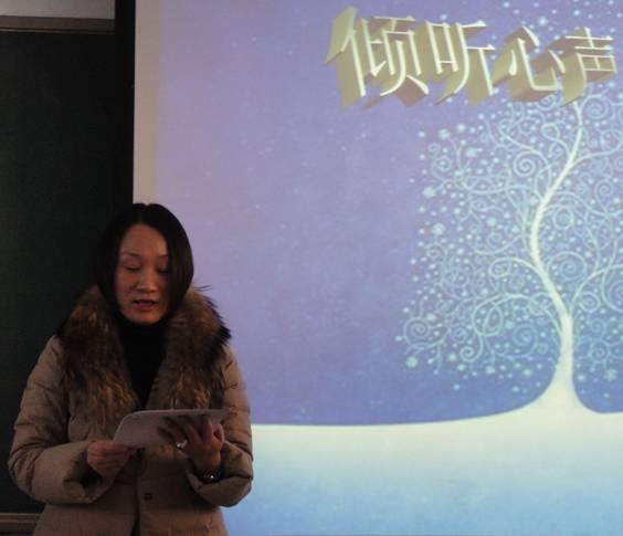 一阵欢声笑语后,开始了第二个活动“用心倾听爱”。与会的家长和孩子们一一对应着互相读信,先是孩子们读给妈妈,接着是妈妈读给孩子。方慈蓉同学的妈妈深情地爱的表白,长达三页的内容,让在场的人都留下感动的泪水;陈逍遥同学的妈妈诙谐幽默的语言给大家带来欢乐,那种民主和谐的母子关系让大家十分羡慕;内向的原诺言同学小声翼翼地说出自己给妈妈的建议,听到孩子真诚的道歉和建议,妈妈更是眼含热泪多次像孩子表达歉意;浦艺璇同学只说了一句:“我的爱好,您许了吧!”在座同学们纷纷对其表示鼓励,报以热烈掌声,妈妈更是多次表达了自己的歉意,当她听完妈妈的信后也掉下了理解的眼泪;王筱影同学的妈妈说她和天下父母一样,希望孩子坚强、自立、智慧、达观;希望孩子能自由翱翔,但又担心孩子会迷失方向或者受伤。这种忐忑矛盾患得患失的心情,只有当父母的才能体会。特别信中最后落款写到:“陪你疯、陪你玩、陪你长大,永远爱你,无条件爱你的妈妈!”表达了无数父母对孩子的期盼与担忧。杜诗雨同学的妈妈说到:“谢谢你,宝贝,每当我倦了、累了、烦了、恼了,只要想起宝贝,内心就会充满力量,是你让妈妈感恩生活,憧憬未来;是你让妈妈即品尝了为人母的艰辛,又倍感从未有过的甜蜜和幸福!”家长们的话让同学们感觉到他们的存在带给父母欢乐和力量;感受到生命不仅仅是自己的,更是父母的;感受到身上所肩负的责任。整整两节课大家都沉浸在这种暖融融的爱意中,畅游在爱河中。
