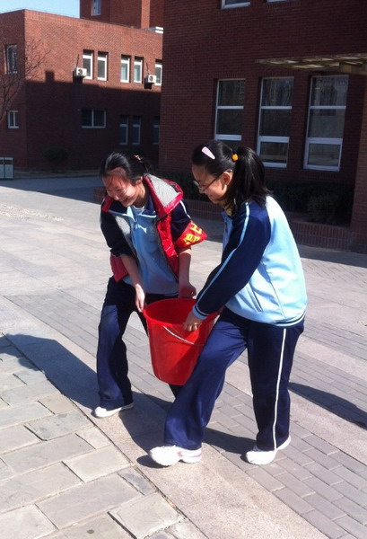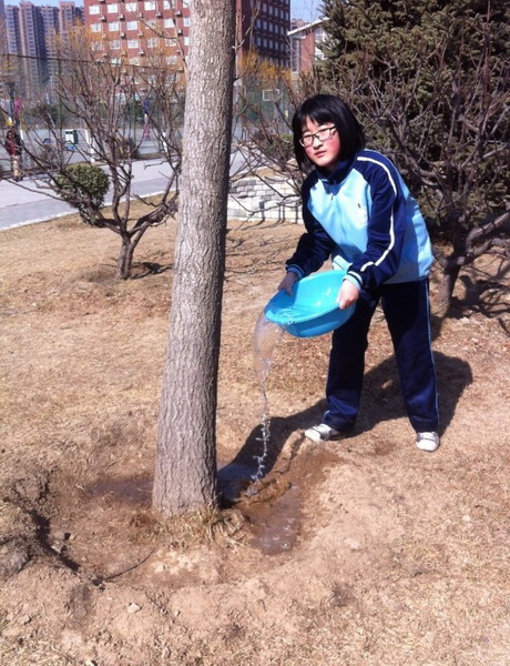 3月5日是第51个“学习雷锋纪念日”。我校初一、初二年级部分团员利用自己的休息时间自发地组织为学校绿化带浇水。在老师的指导下,同学们以班级为团队,每组来回穿梭在教学楼与操场外的绿化带周围。如同辛勤的蜜蜂般,快乐又光荣。